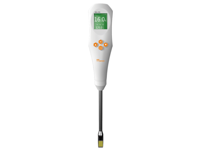 食用油脂是人們攝取能量和營養的重要來源,是加工食品的重要原料。油炸食品以其特有風味廣受消費者喜歡。用於煎炸的食用油在高溫煎炸過程中發生一系列的物理、化學變化,這些變化會生成對身體健康有害的物質。目前,食用油脂品質的傳統檢測方法多為化學方法,這些方法必須在實驗室內由專業人員操作,費時費力,化學試劑的使用可能會傷害檢測人員健康,且化學廢劑污染了環境。煎炸食用油中極性化合物組分含量值,是我國煎炸油衛生標準裡的一項重要指標,可用來判斷煎炸食用油品質的優劣。OS270是一台快速,安全,高效的食用油品質檢測儀,能夠快速檢測食用油中的極性化合物組分含量,且能夠在油溫較高的環境下使用,適用於各種煎炸食用油品質的檢測。